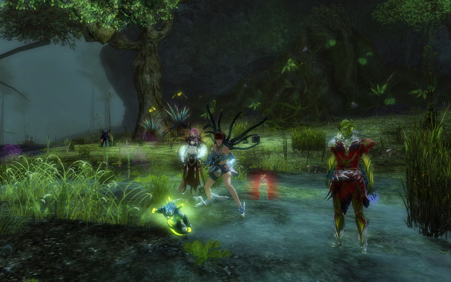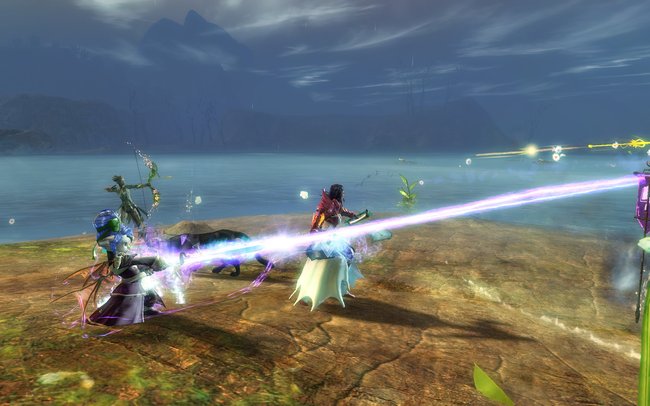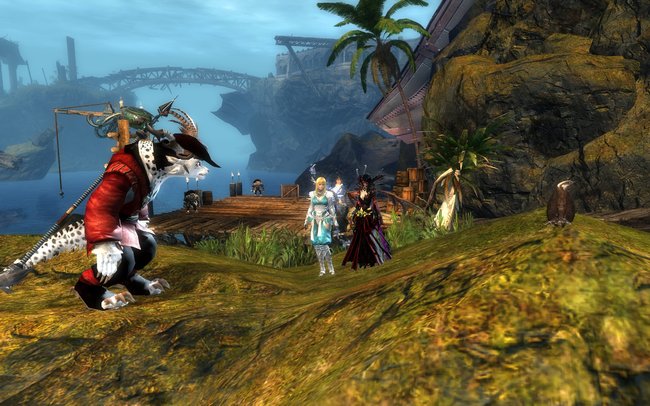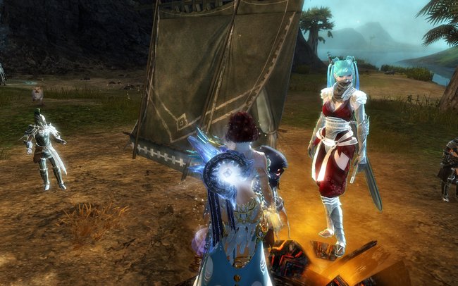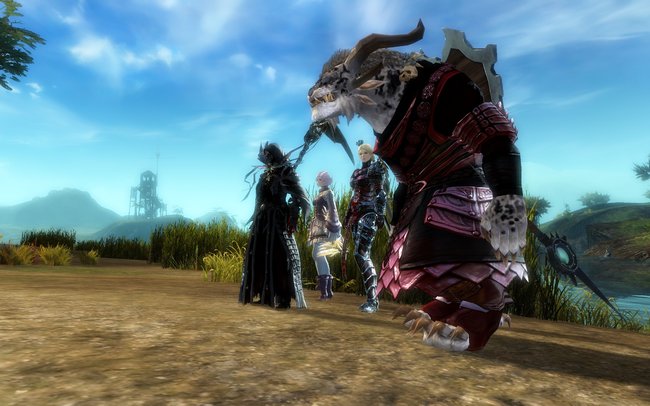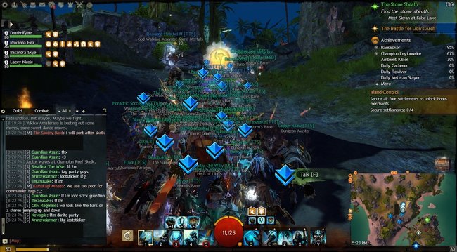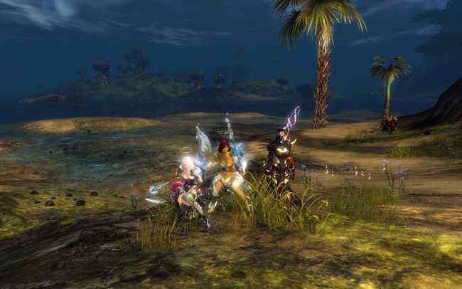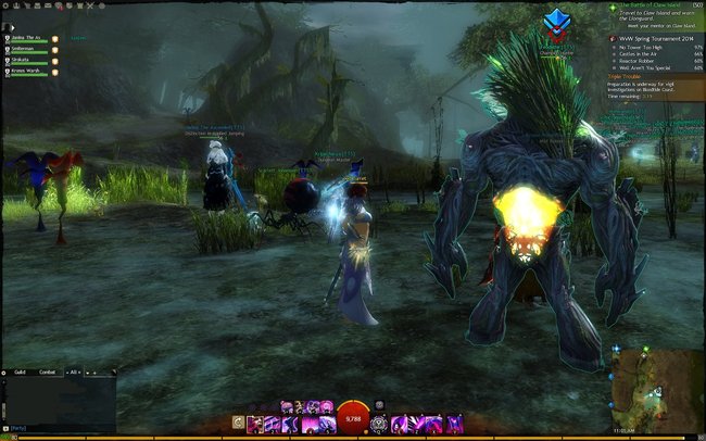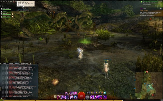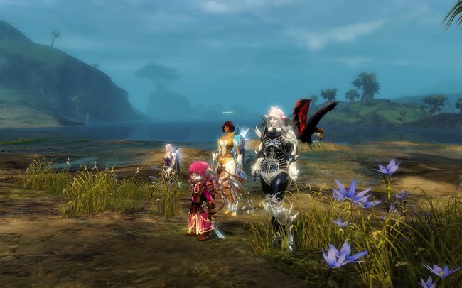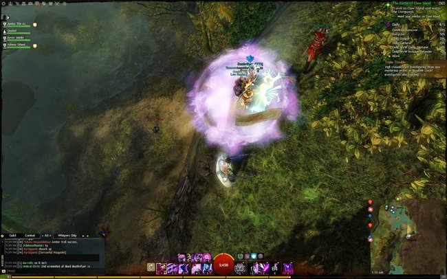 2014-07-29: Fizz, Sushi, Sasu, and I went to go see Feo's new necromancer at Bloodtide Coast after EU Teq