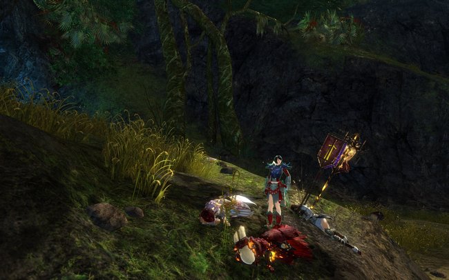 2014-08-14: Kenage died first, and I stayed with him from the very beginning in order to get screenshots. He wasn't actually alone like I said in the post. Hehe, Kenage was probably wondering what in the world the big fat blue Norn ranger was doing.
